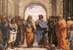 Raphael's The School of Athens with Plato and Aristotle at the center, is a symbolic painting which suggests the strength and influence of scholars and philosophers in the ancient world.